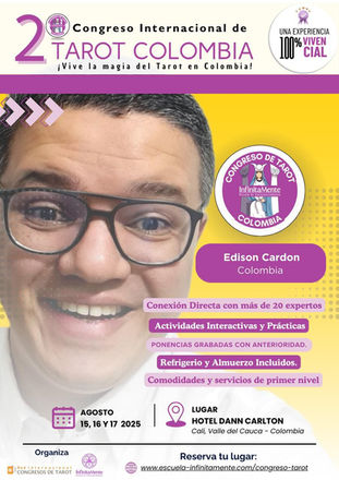 Ya seas un lector experimentado, un estudiante apasionado o simplemente alguien con curiosidad por esta poderosa disciplina, el Segundo Congreso de Tarot de Colombia 2025 te ofrecerá un espacio invaluable para aprender, conectar y enriquecer tu camino personal. ¡Únete a nosotros para expandir tu sabiduría y desvelar los misterios del alma a través de las cartas!